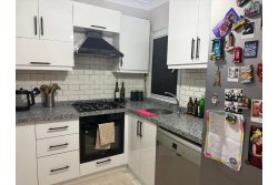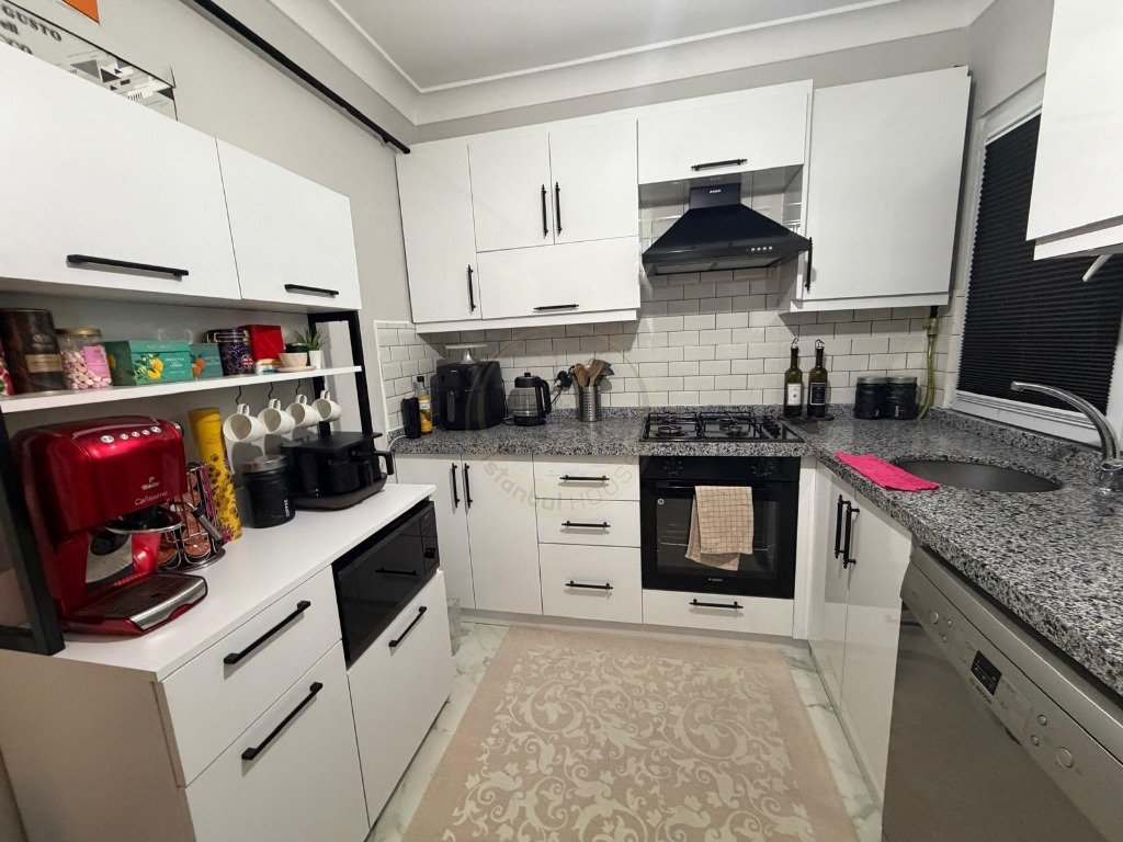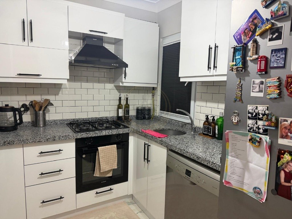 Ankastre mutfak , laminant parkeli, hilton banyolu, çelik kapılı, lake mutfak ve banyo dolapları,